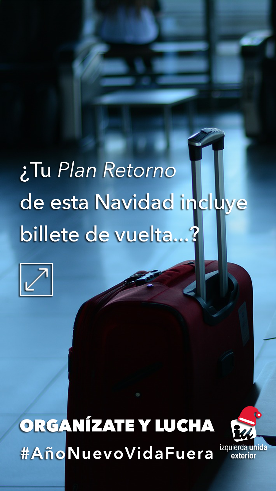 IU Exterior invita a todas aquellas personas desplazadas en el extranjero y a sus allegados a que compartan estas imágenes a través de sus redes y que publiquen sus experiencias con el hashtag #AñoNuevoVidaFuera para dar a conocer estas situaciones y ayudar así a defender sus derechos desde el exterior.